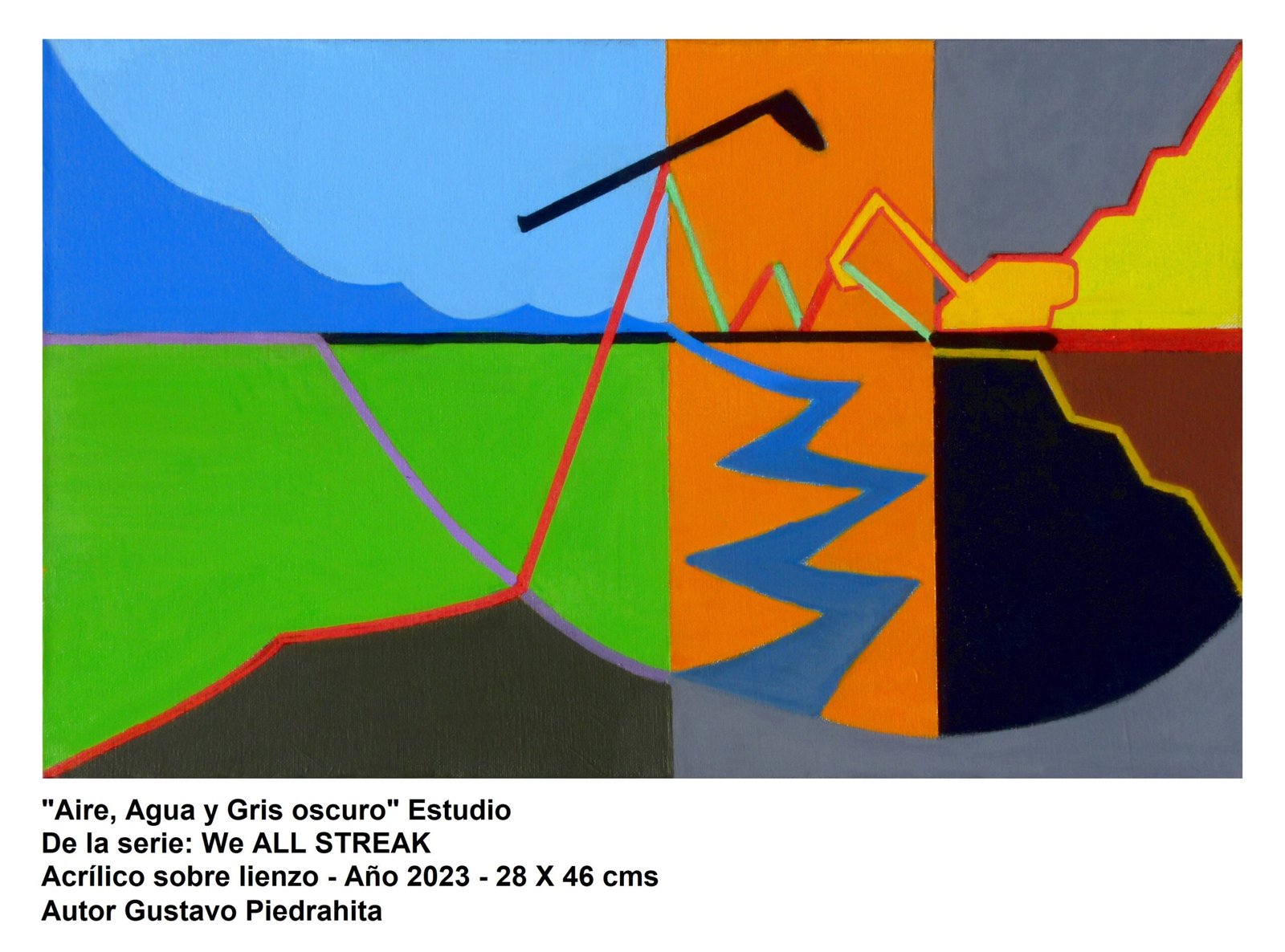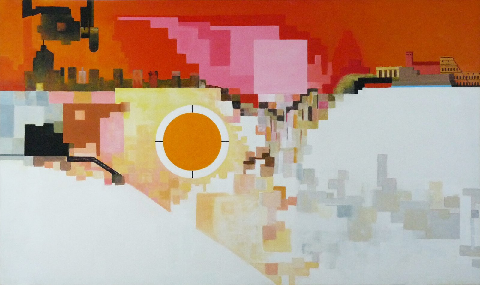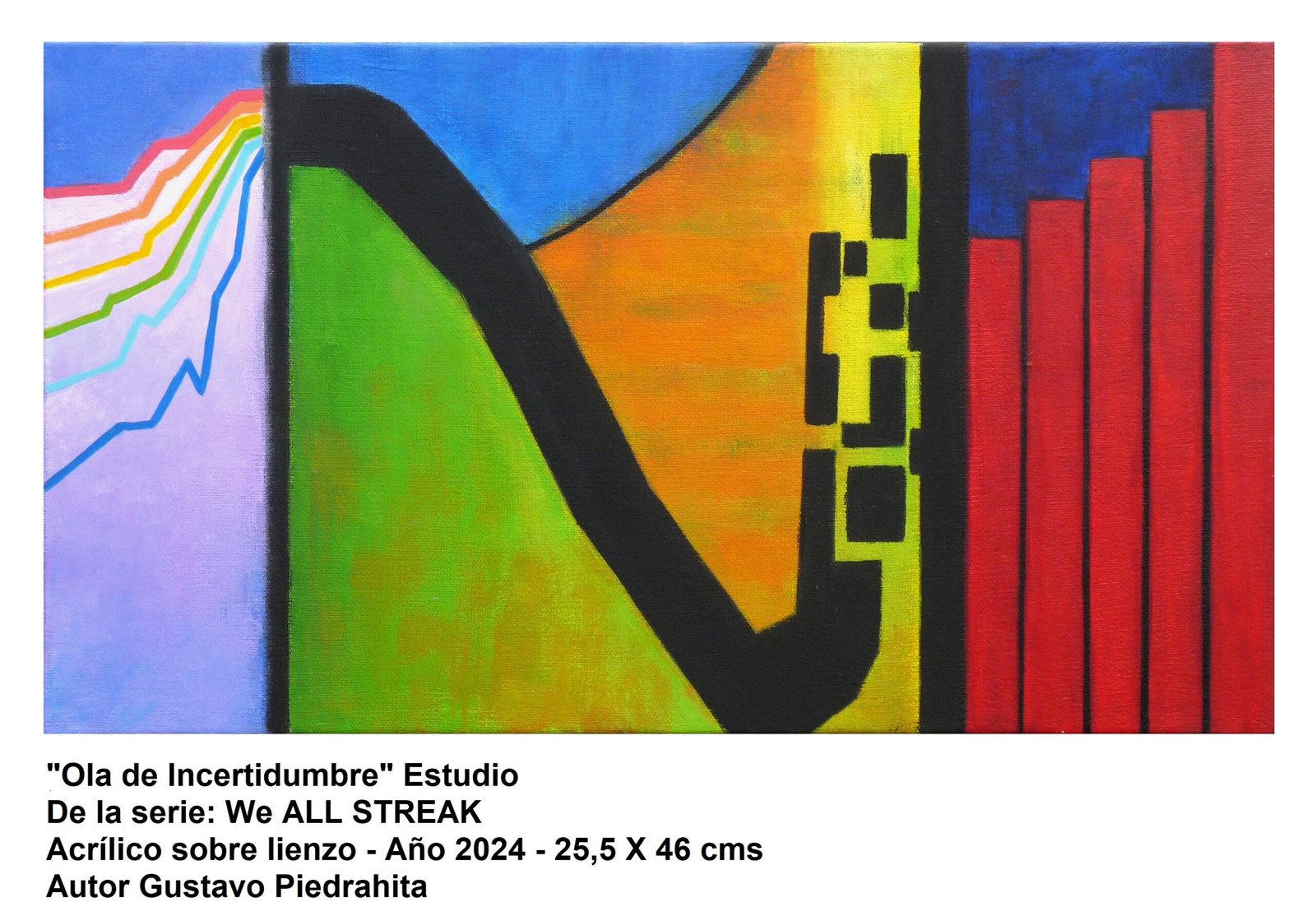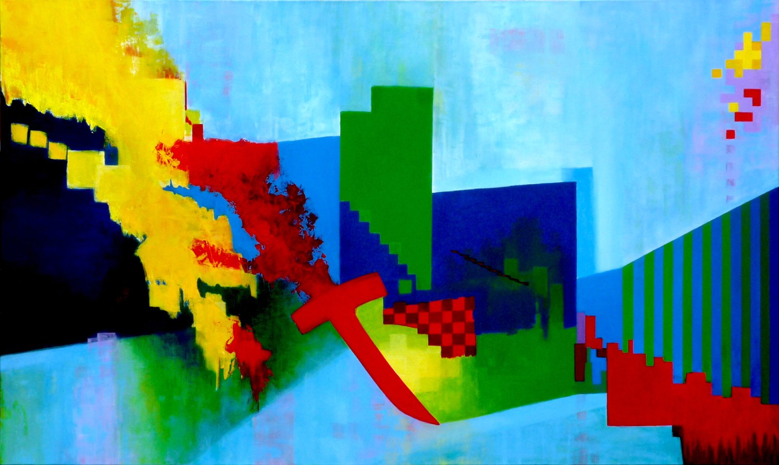 With abstraction as my goal, I began creating the first works around these two deity-phenomena: Chaos and Cosmos from Greek mythology as the conceptual axis. The initial idea was to start from a chaotic environment, created randomly on the canvas, and from there to intuit or impose a form that suggested order, for which I would use geometric figures. At the same time that I was beginning these first attempts to develop the work, I had the fortune of coming into contact with the Cliodynamics of Scientist and Historian Peter Turchin, with his analysis of secular historical cycles and the dynamics of societies. That was the counterpoint that set my course and satisfied my desire to give the work that syncretic quality that would allow me to speak of our reality through an abstract pictorial language, which I have named “Abstract Realism.”