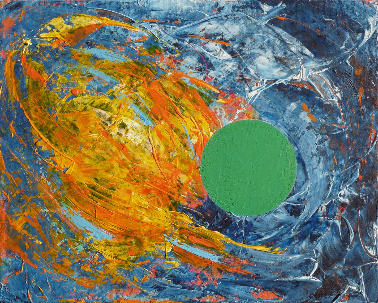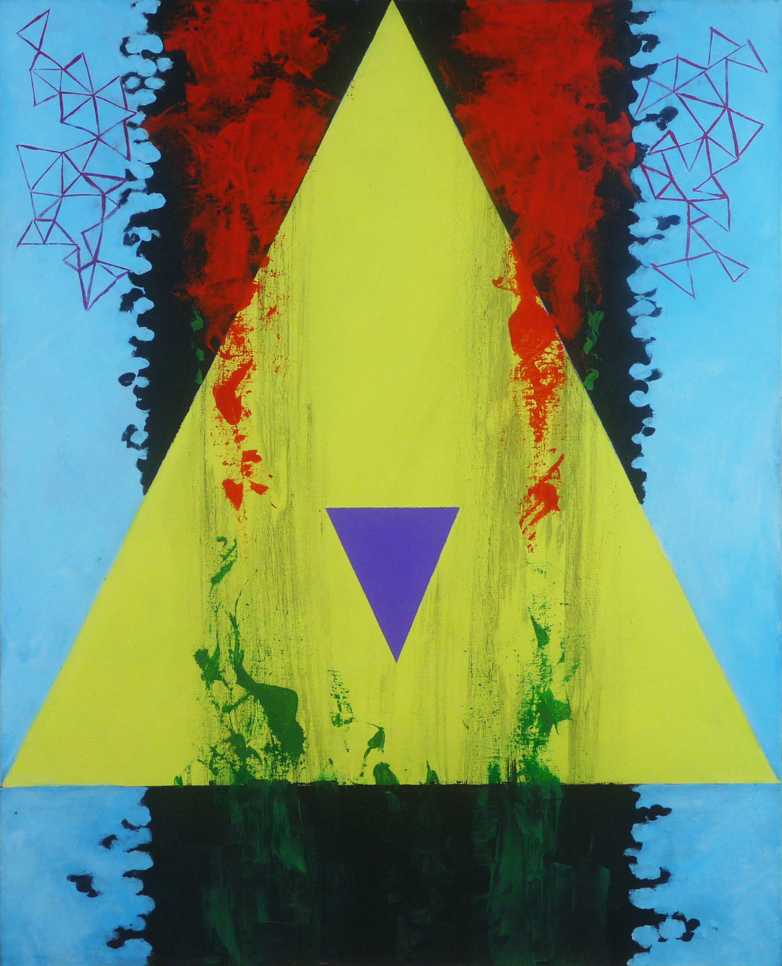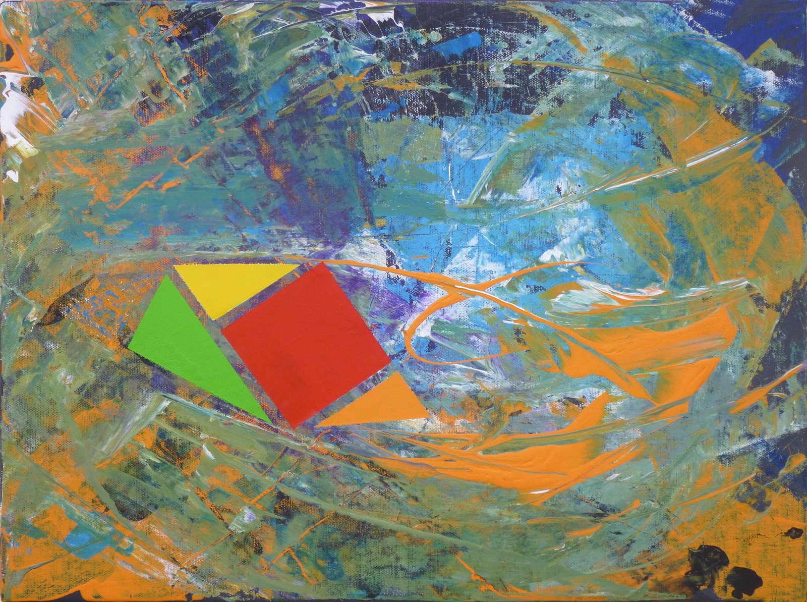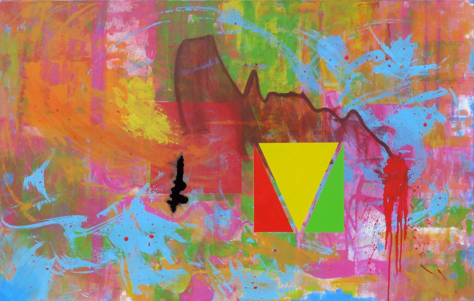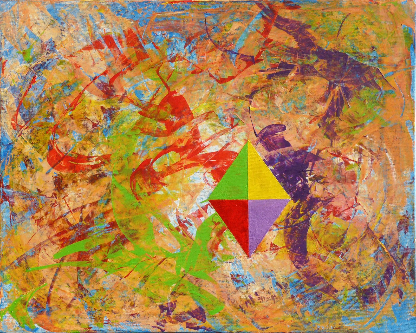 With abstraction as my goal, I began creating the first works around these two deity-phenomena: Chaos and Cosmos from Greek mythology as the conceptual axis. The initial idea was to start from a chaotic environment, created randomly on the canvas, and from there to intuit or impose a form that suggested order, for which I would use geometric figures. At the same time that I was beginning these first attempts to develop the work, I had the fortune of coming into contact with the Cliodynamics of Scientist and Historian Peter Turchin, with his analysis of secular historical cycles and the dynamics of societies. That was the counterpoint that set my course and satisfied my desire to give the work that syncretic quality that would allow me to speak of our reality through an abstract pictorial language, which I have named “Abstract Realism.”
