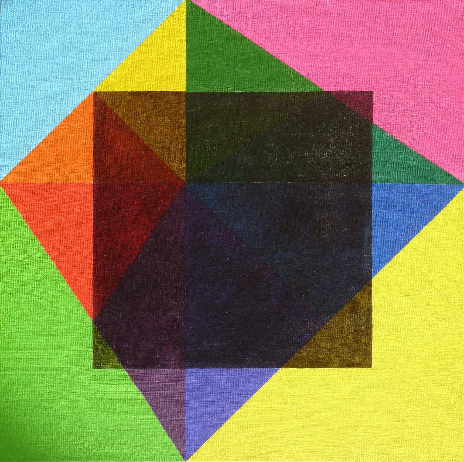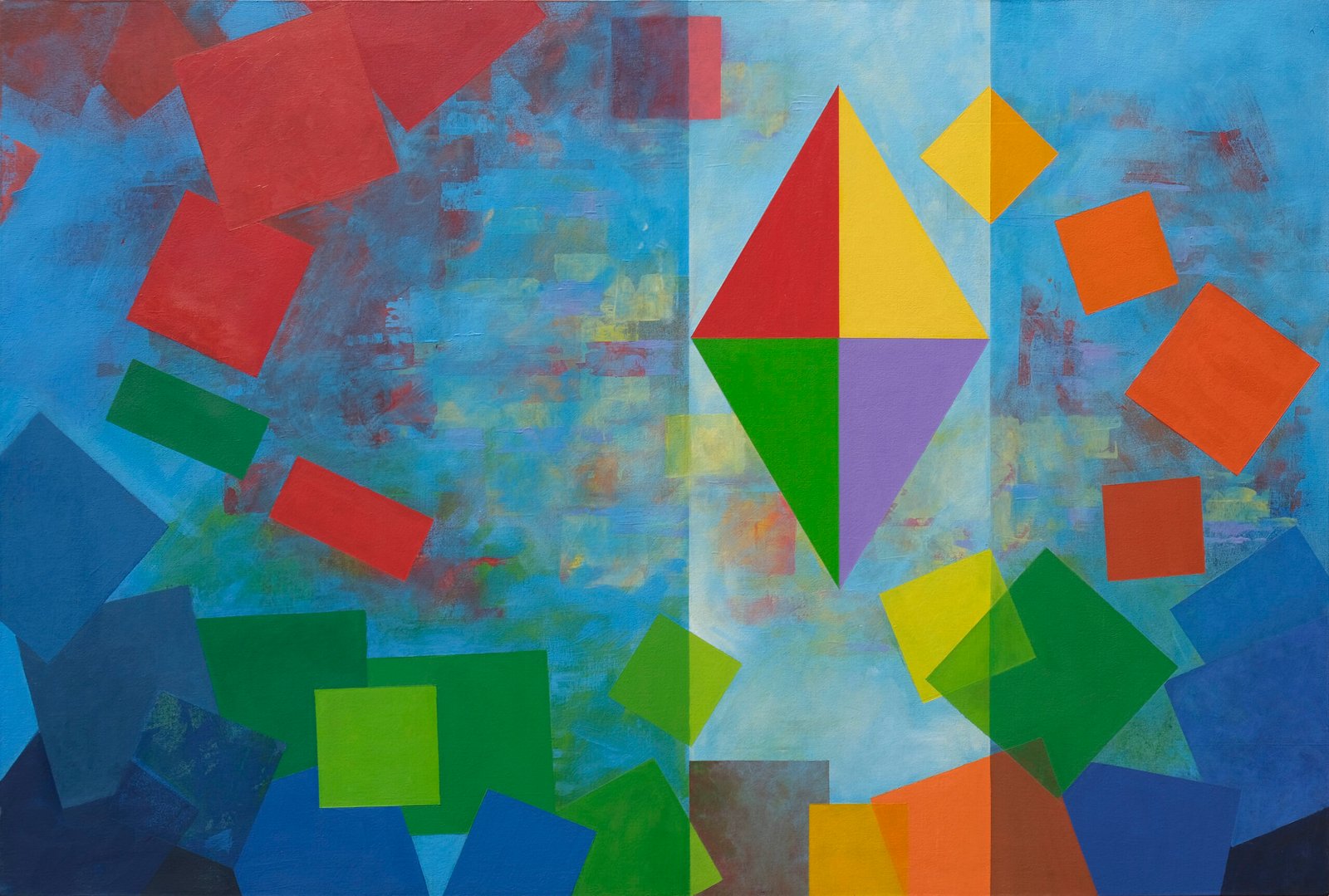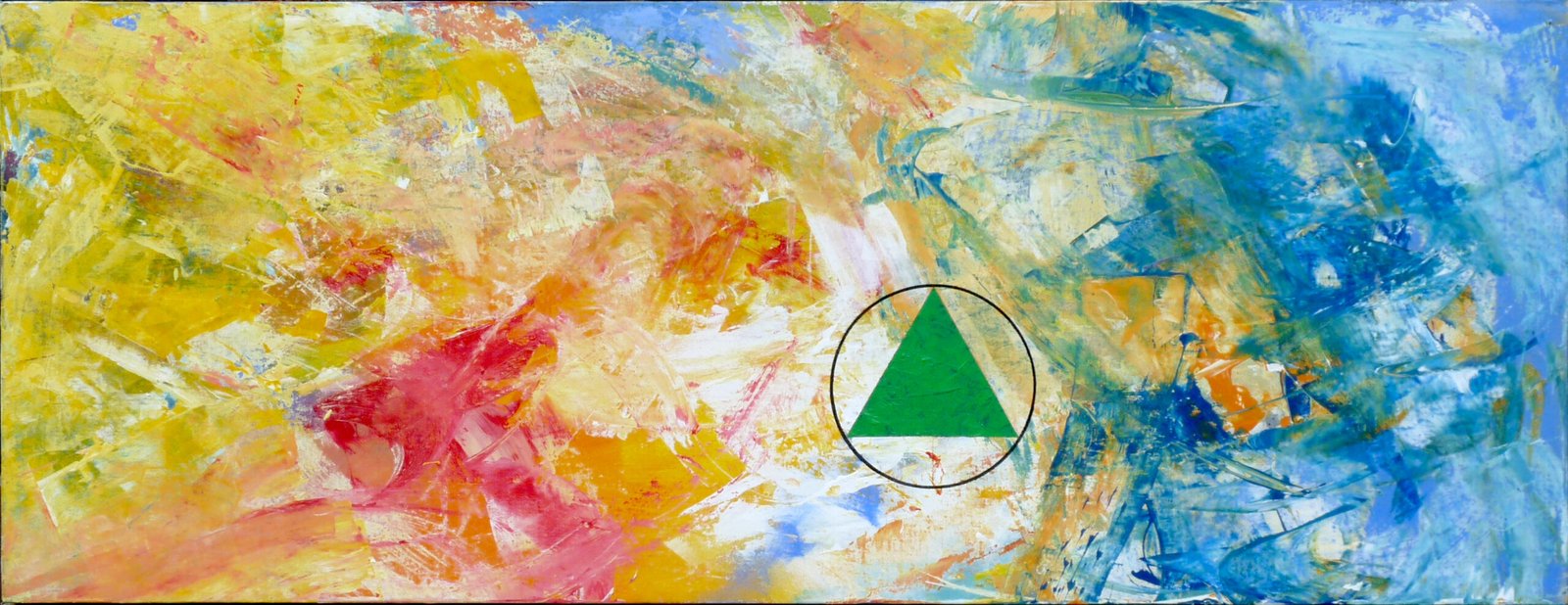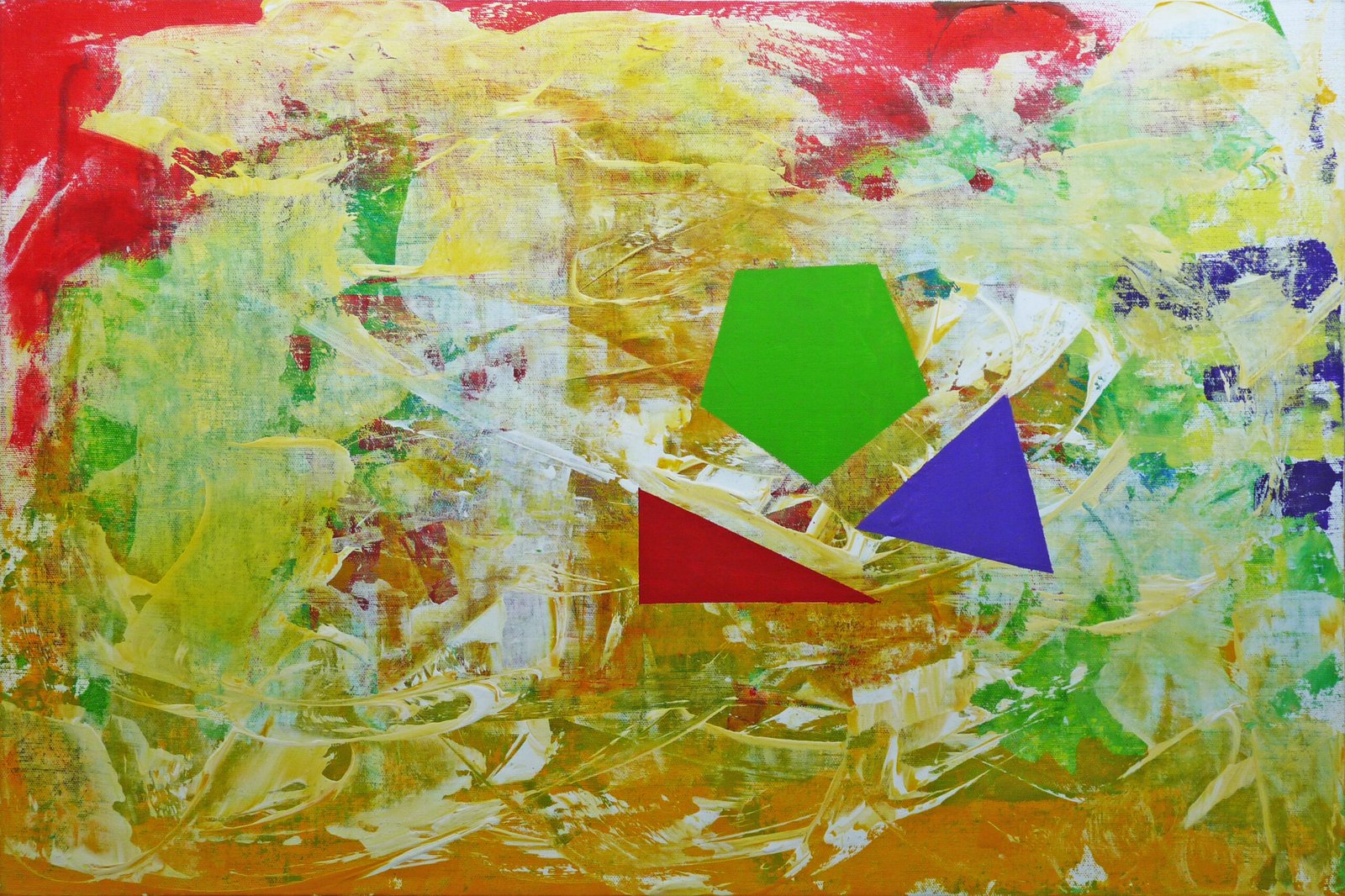 With abstraction as my goal, I began creating the first works around these two deity-phenomena: Chaos and Cosmos from Greek mythology as the conceptual axis. The initial idea was to start from a chaotic environment, created randomly on the canvas, and from there to intuit or impose a form that suggested order, for which I would use geometric figures. At the same time that I was beginning these first attempts to develop the work, I had the fortune of coming into contact with the Cliodynamics of Scientist and Historian Peter Turchin, with his analysis of secular historical cycles and the dynamics of societies. That was the counterpoint that set my course and satisfied my desire to give the work that syncretic quality that would allow me to speak of our reality through an abstract pictorial language, which I have named “Abstract Realism.”