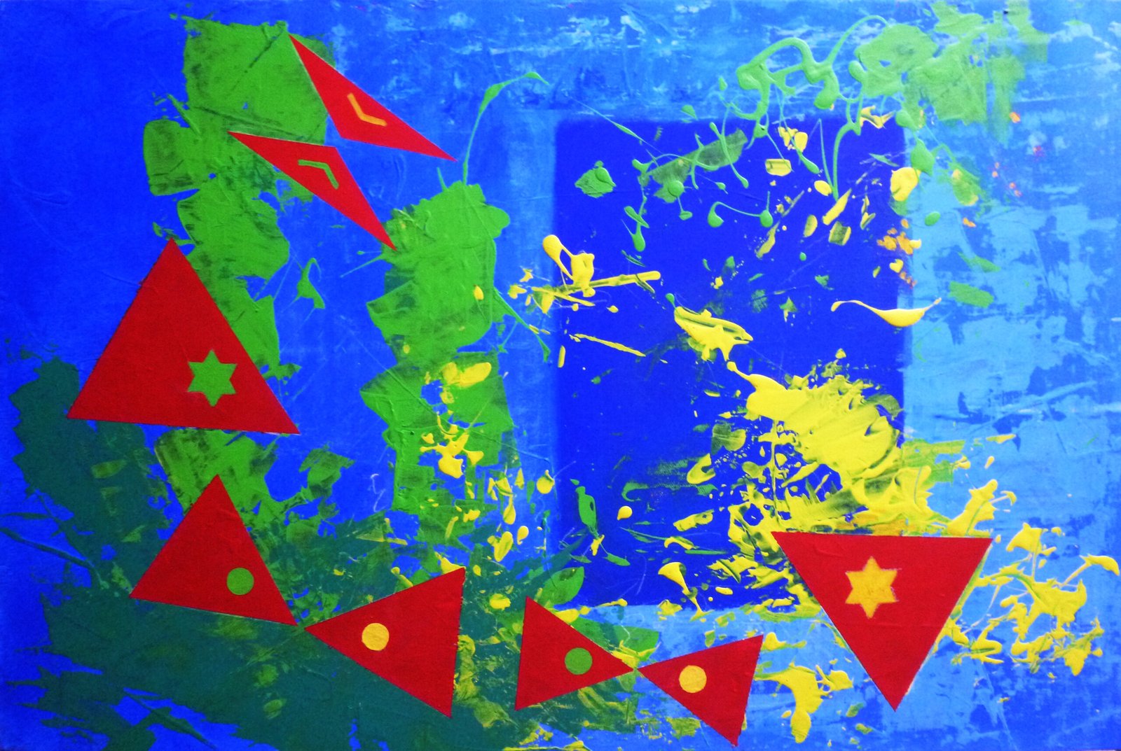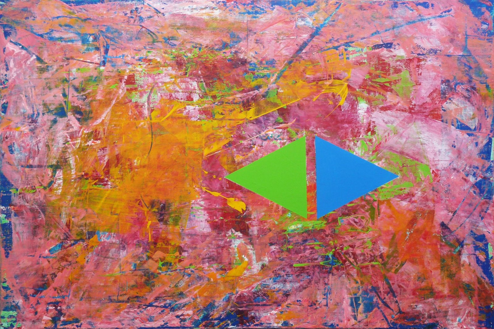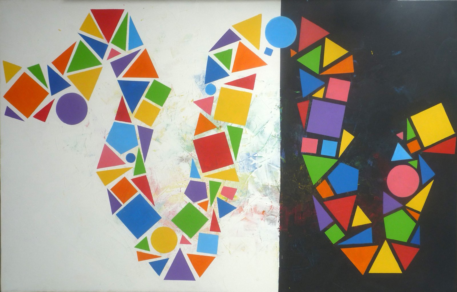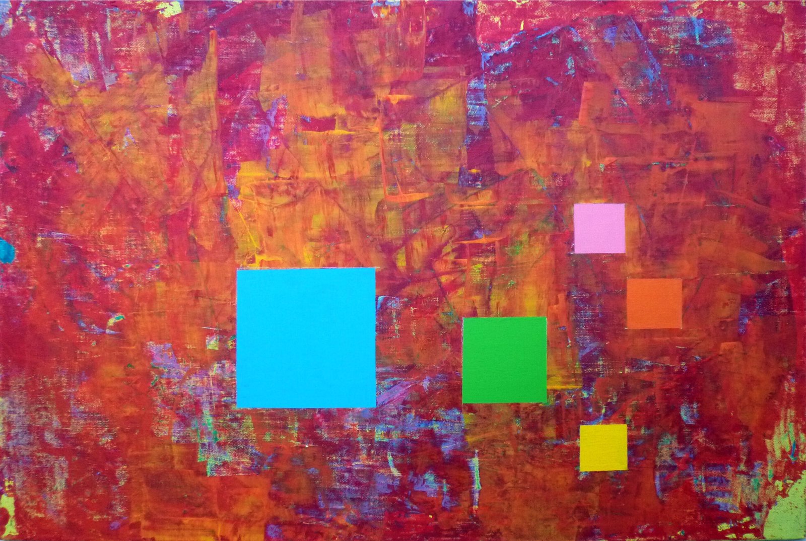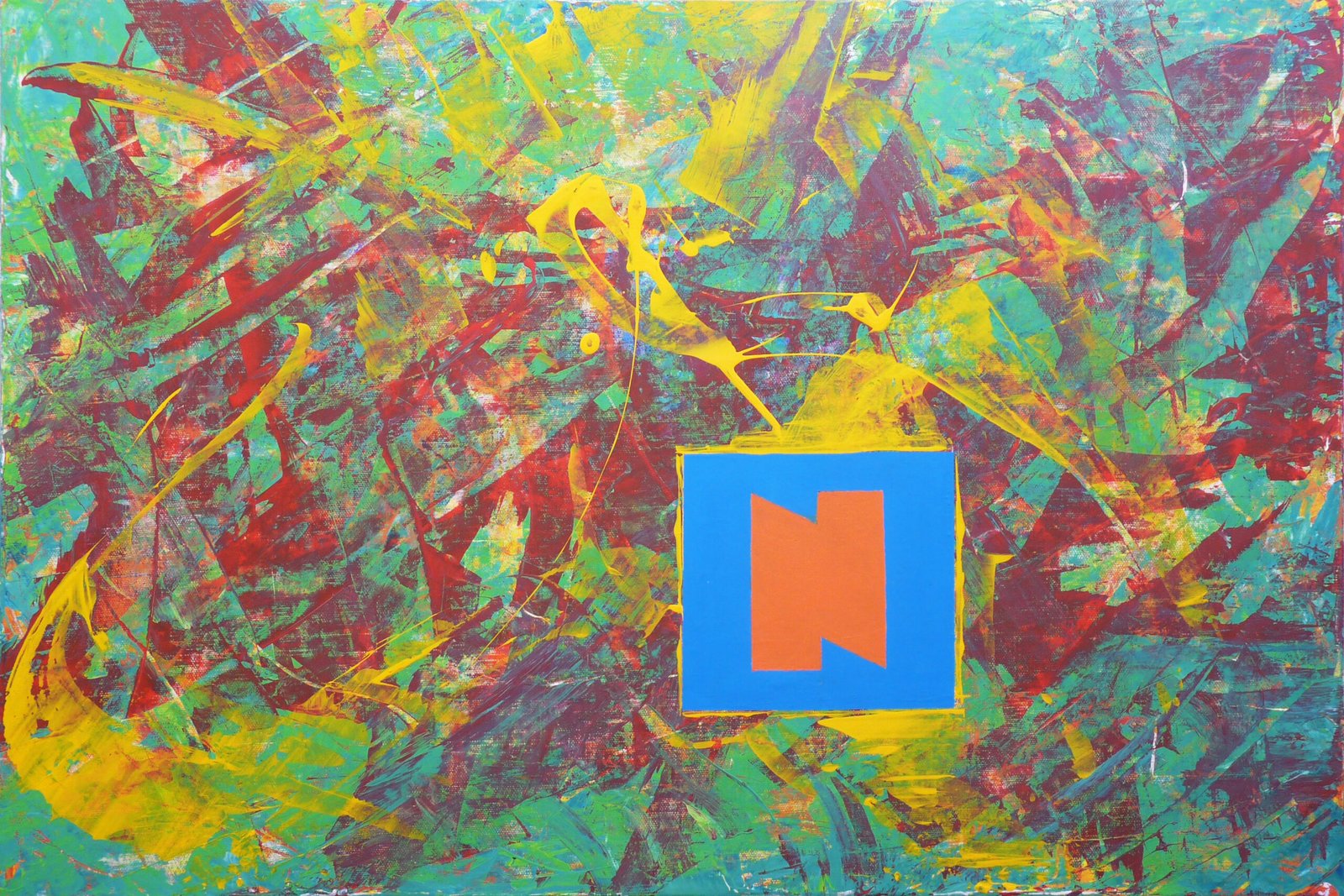 With abstraction as my goal, I began creating the first works around these two deity-phenomena: Chaos and Cosmos from Greek mythology as the conceptual axis. The initial idea was to start from a chaotic environment, created randomly on the canvas, and from there to intuit or impose a form that suggested order, for which I would use geometric figures. At the same time that I was beginning these first attempts to develop the work, I had the fortune of coming into contact with the Cliodynamics of Scientist and Historian Peter Turchin, with his analysis of secular historical cycles and the dynamics of societies. That was the counterpoint that set my course and satisfied my desire to give the work that syncretic quality that would allow me to speak of our reality through an abstract pictorial language, which I have named “Abstract Realism.”