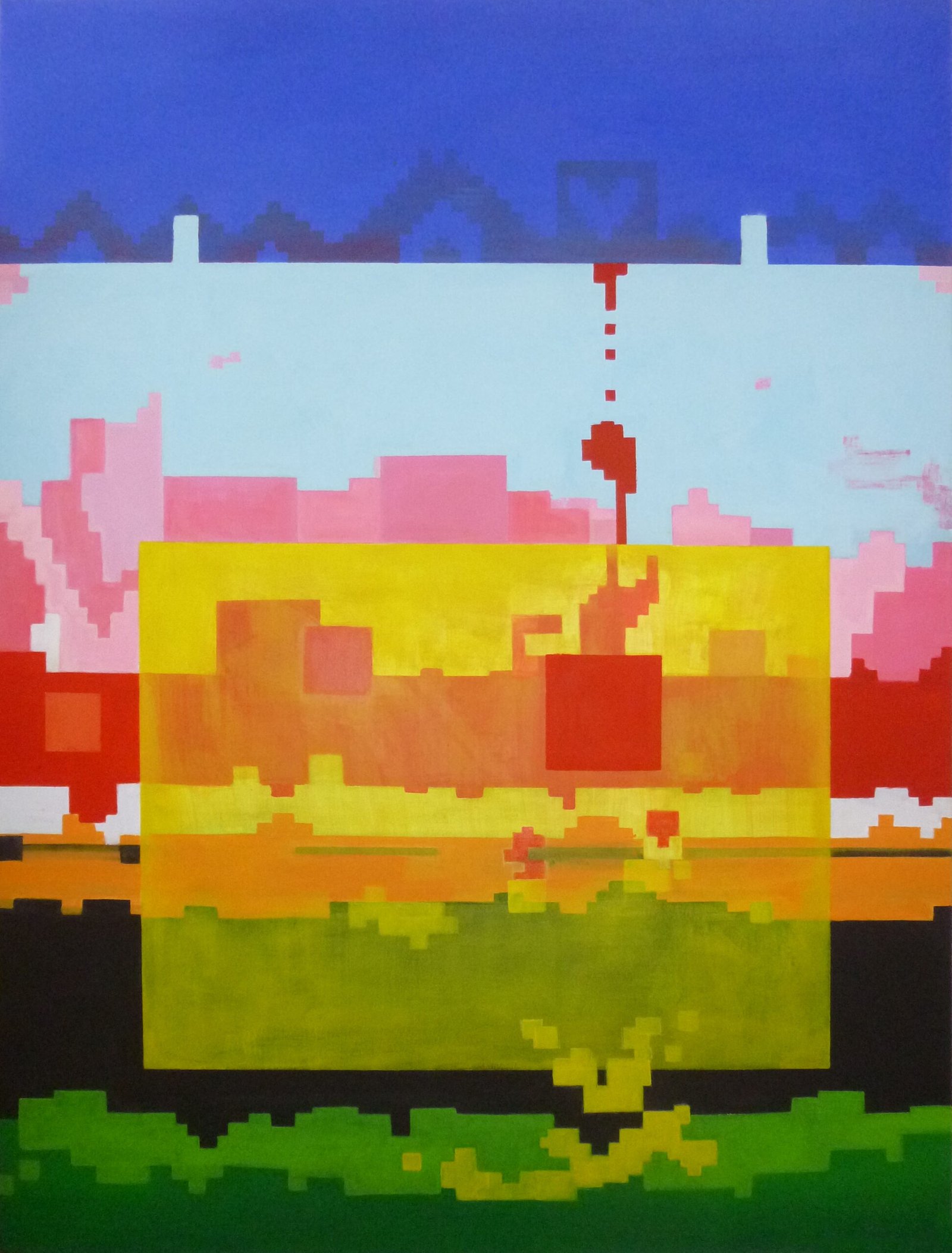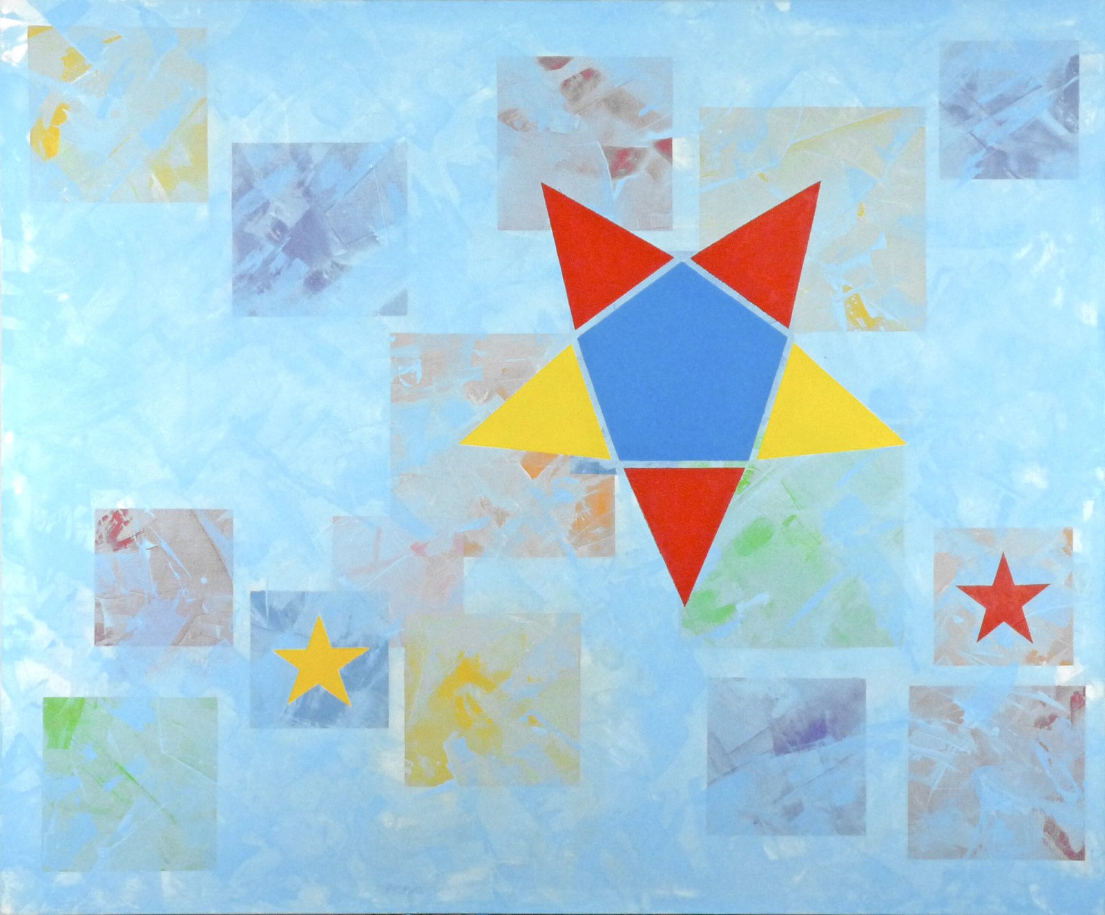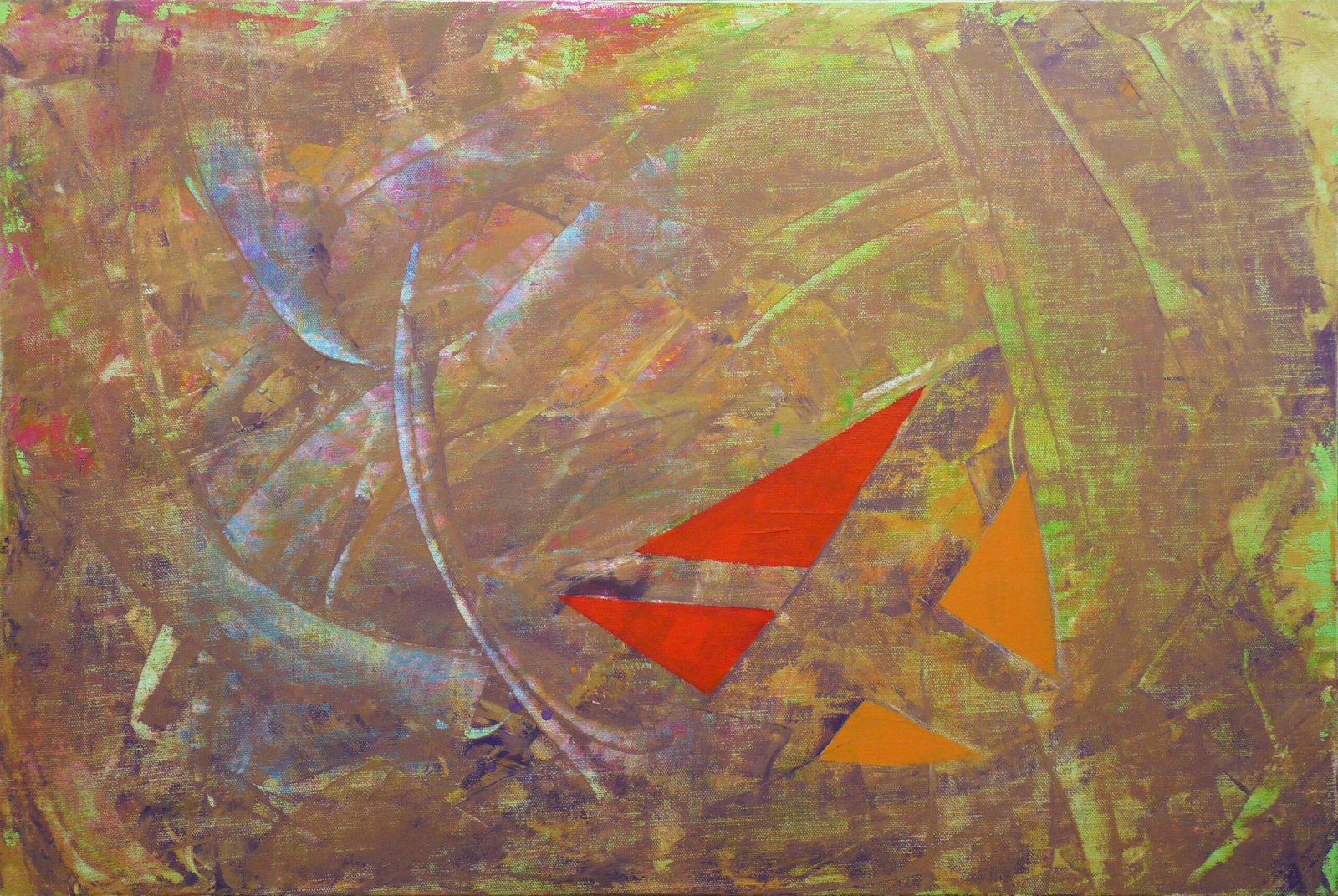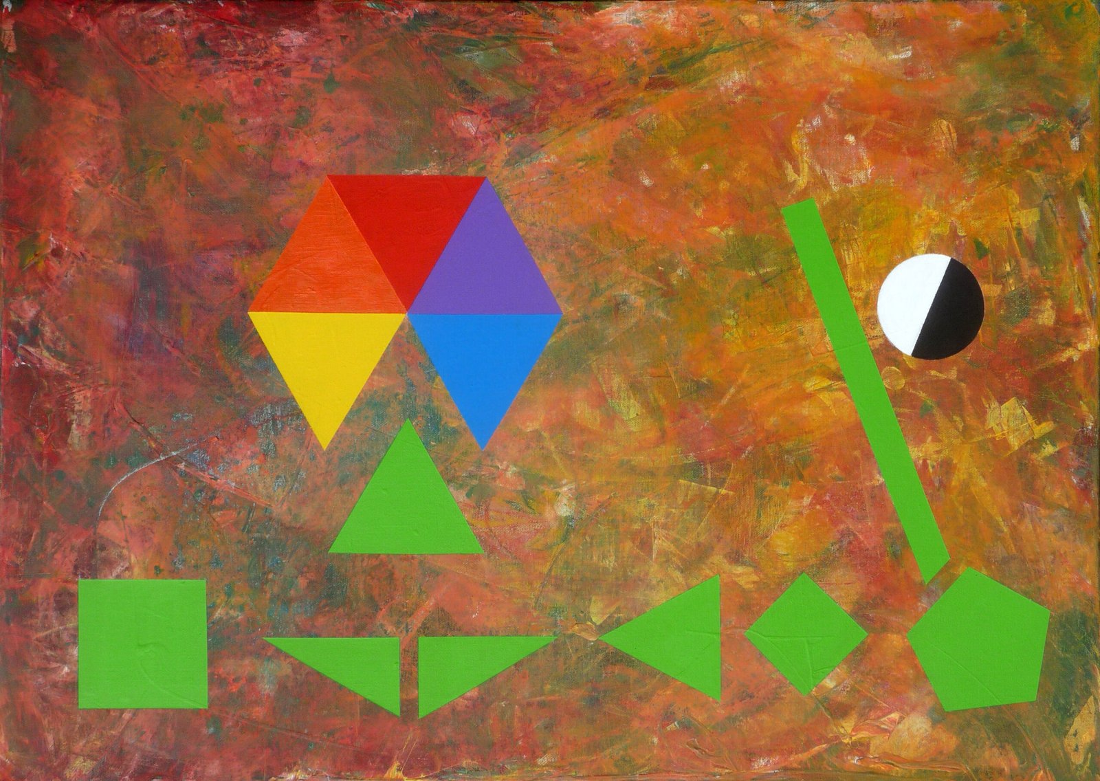 With abstraction as my goal, I began creating the first works around these two deity-phenomena: Chaos and Cosmos from Greek mythology as the conceptual axis. The initial idea was to start from a chaotic environment, created randomly on the canvas, and from there to intuit or impose a form that suggested order, for which I would use geometric figures. At the same time that I was beginning these first attempts to develop the work, I had the fortune of coming into contact with the Cliodynamics of Scientist and Historian Peter Turchin, with his analysis of secular historical cycles and the dynamics of societies. That was the counterpoint that set my course and satisfied my desire to give the work that syncretic quality that would allow me to speak of our reality through an abstract pictorial language, which I have named “Abstract Realism.”