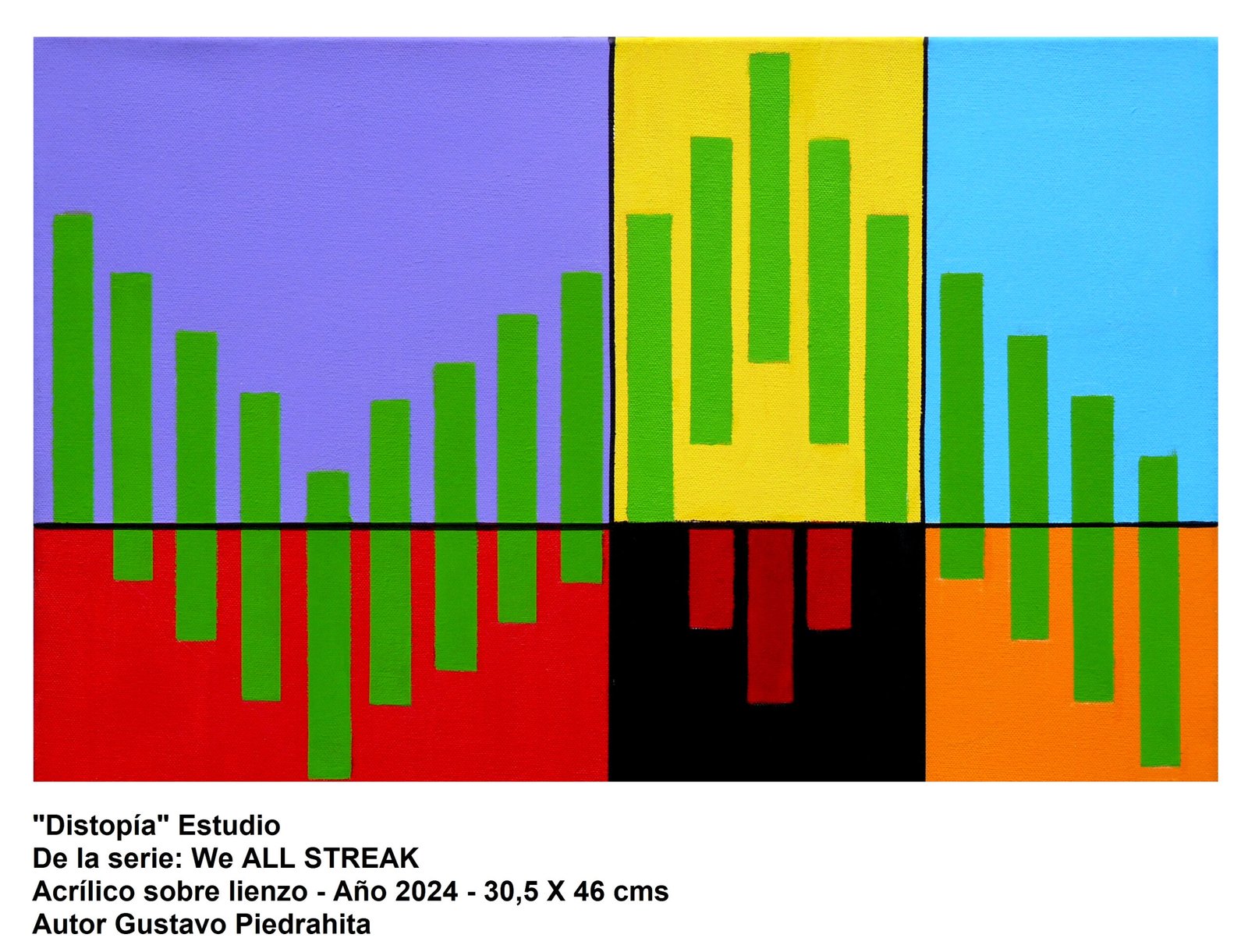A special chapter is the series “We ALL STREAK”, where the theme is the economy as a shaper and creator of reality. This is due to the delicate balance between the accumulative ambitions of decision-makers and the purchasing power of the rest, which determines how they will live, what they will enjoy, and what they will lack under the resulting conditions. For this, I appropriate the icons and patterns used in graphs representing economic variables, as well as the psychology of color, to describe the realities generated for different social groups.