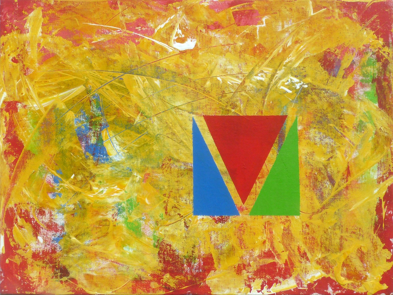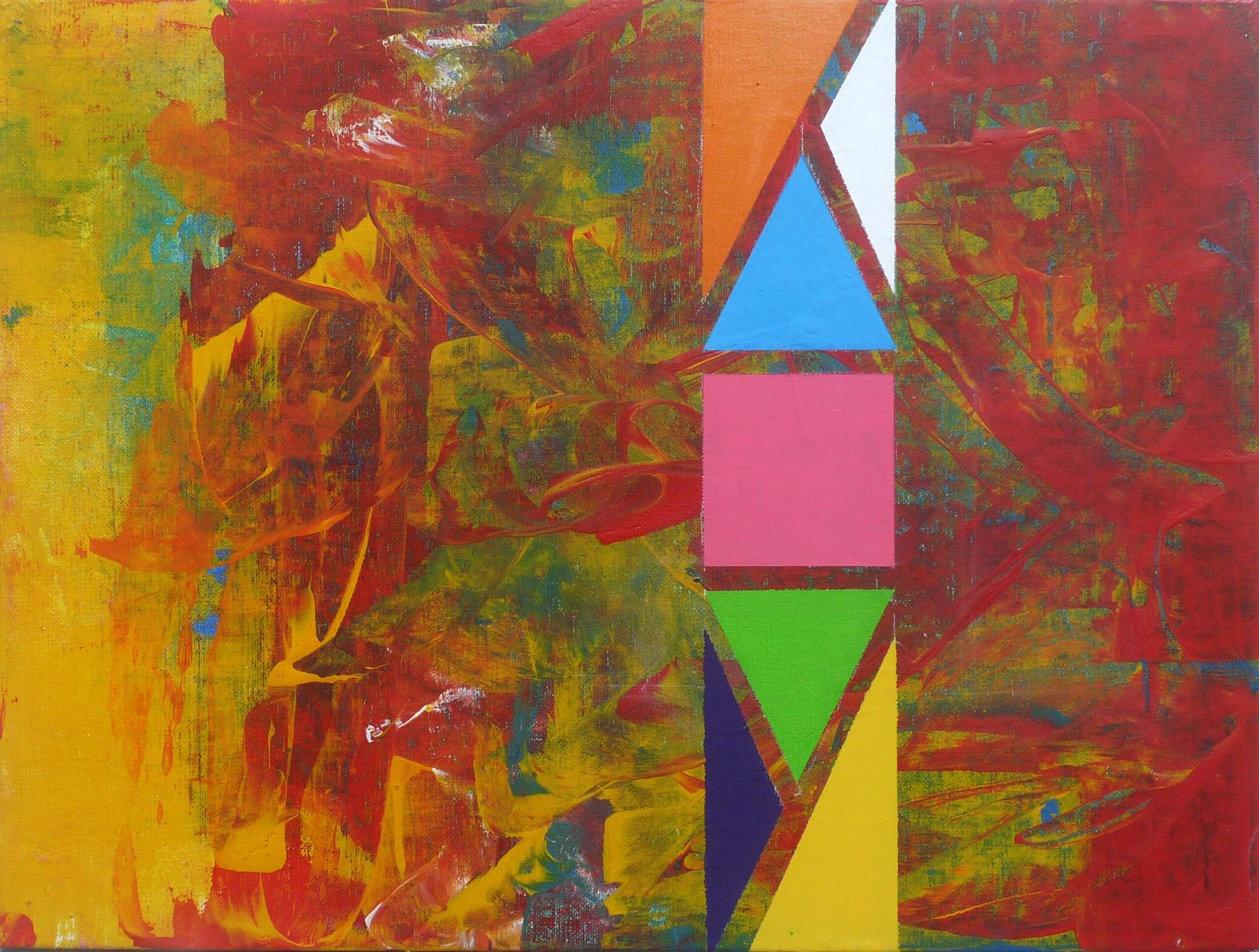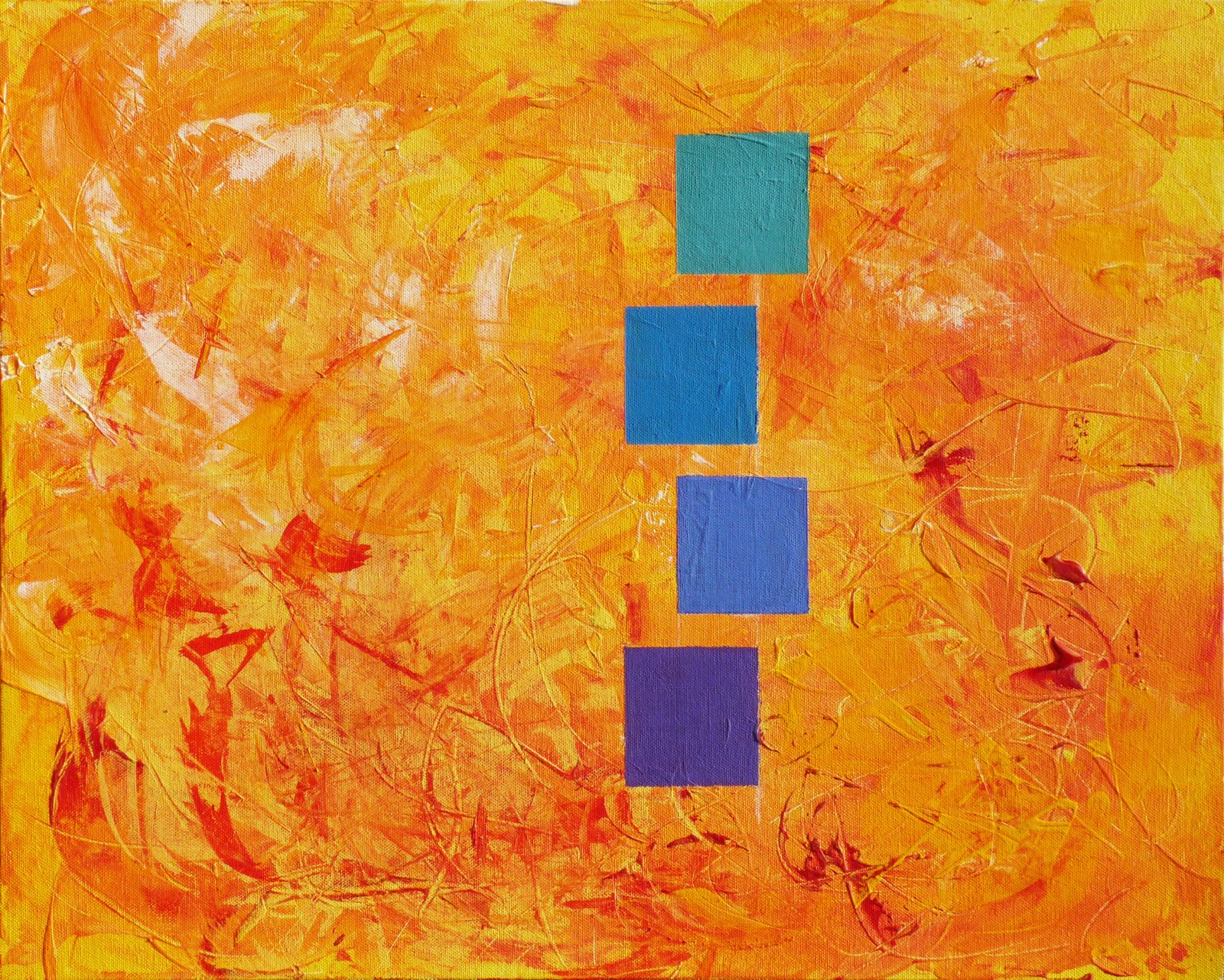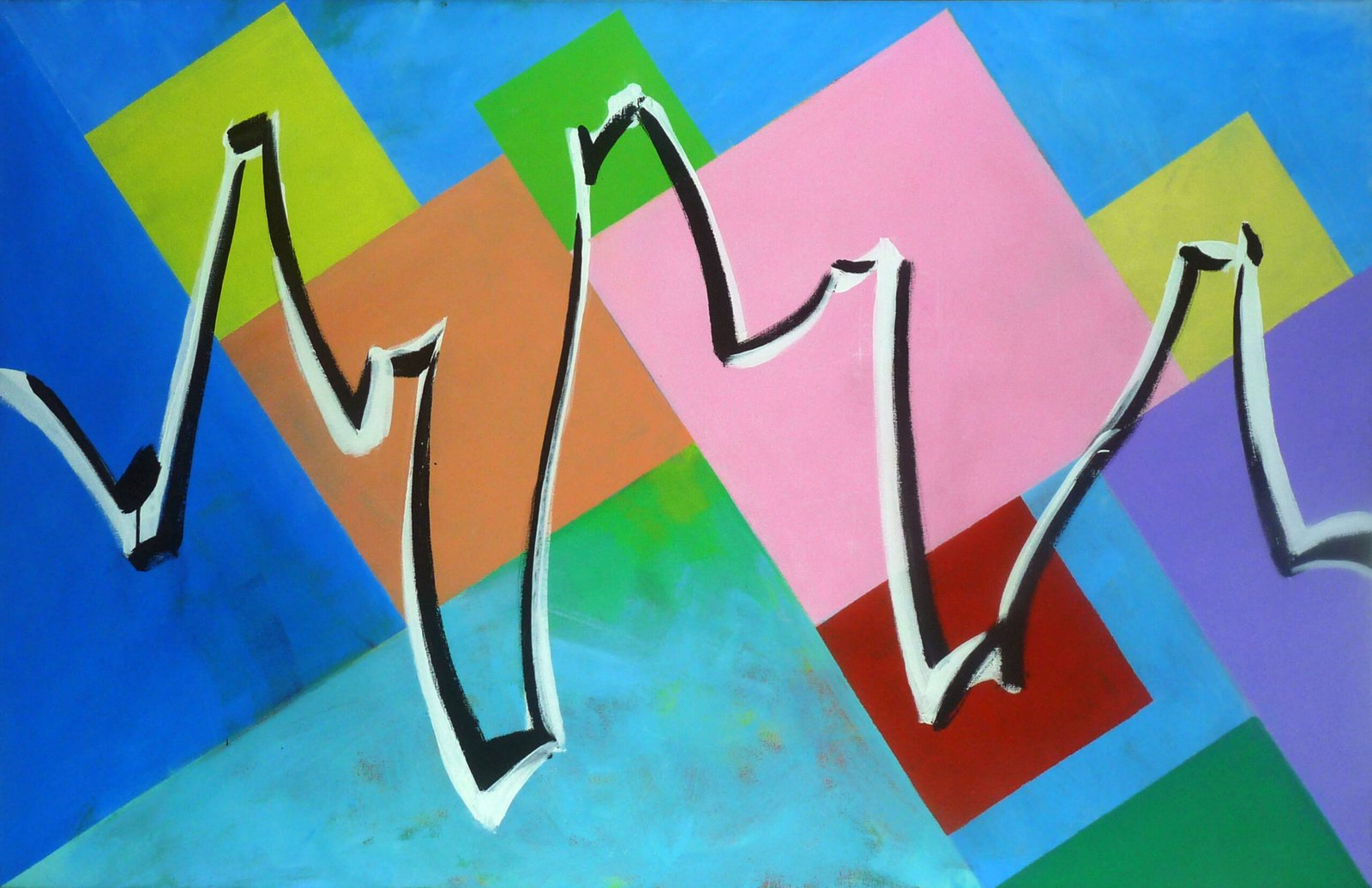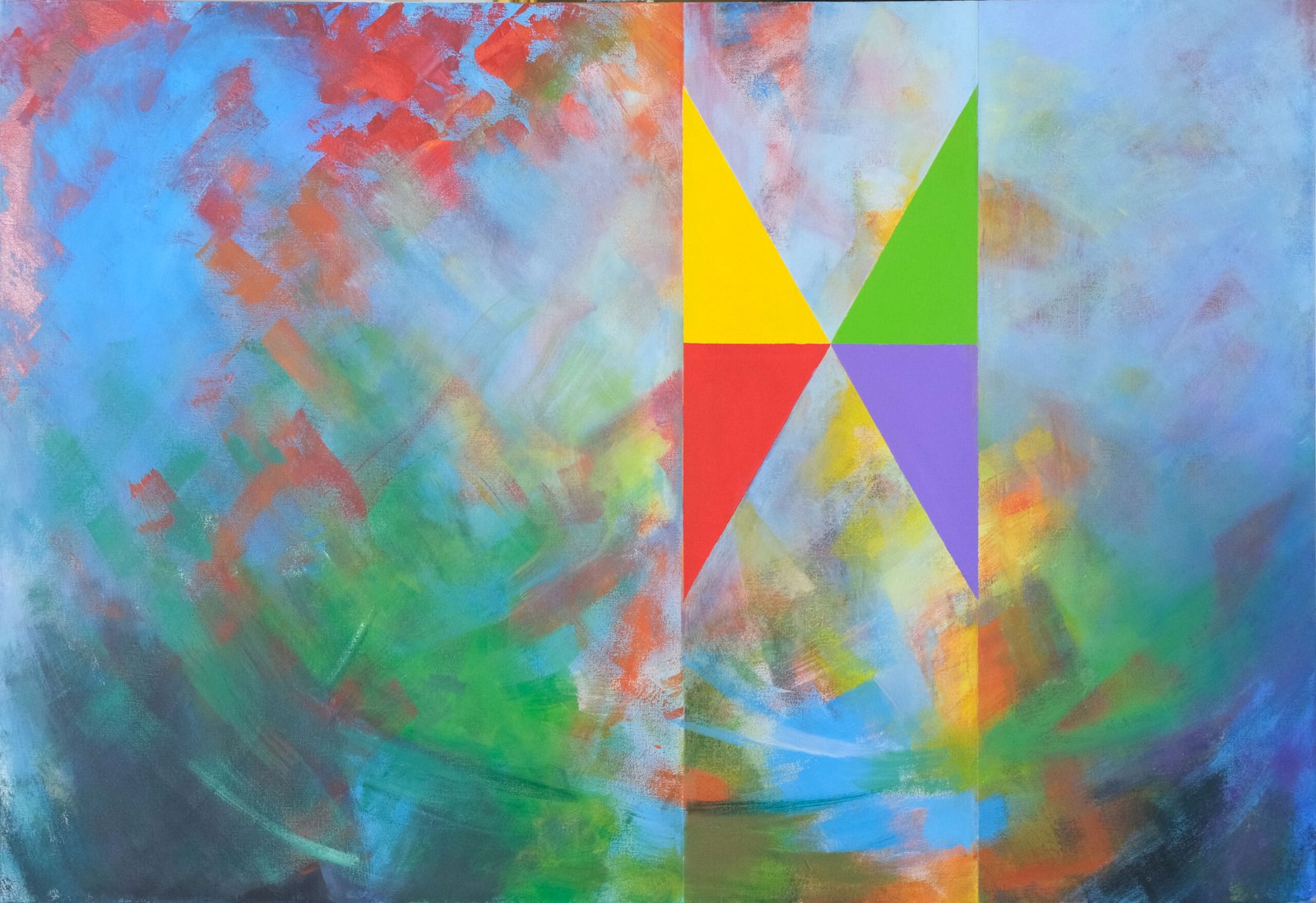 It includes the series “Kaos & Kosmos”, in which I explore events where chaos precedes order, as well as those in which, paradoxically, order generates chaos. This has happened and continues to happen in our reality, provoking revolutions and bloody conflicts that usually bring about paradigm shifts in politics, culture, and religion, which characterize the dynamics of societies. For this, geometric forms, calligraphy, brushstrokes, gestures, layering, scraping and erasing, color, and intention become the language that tells the story.