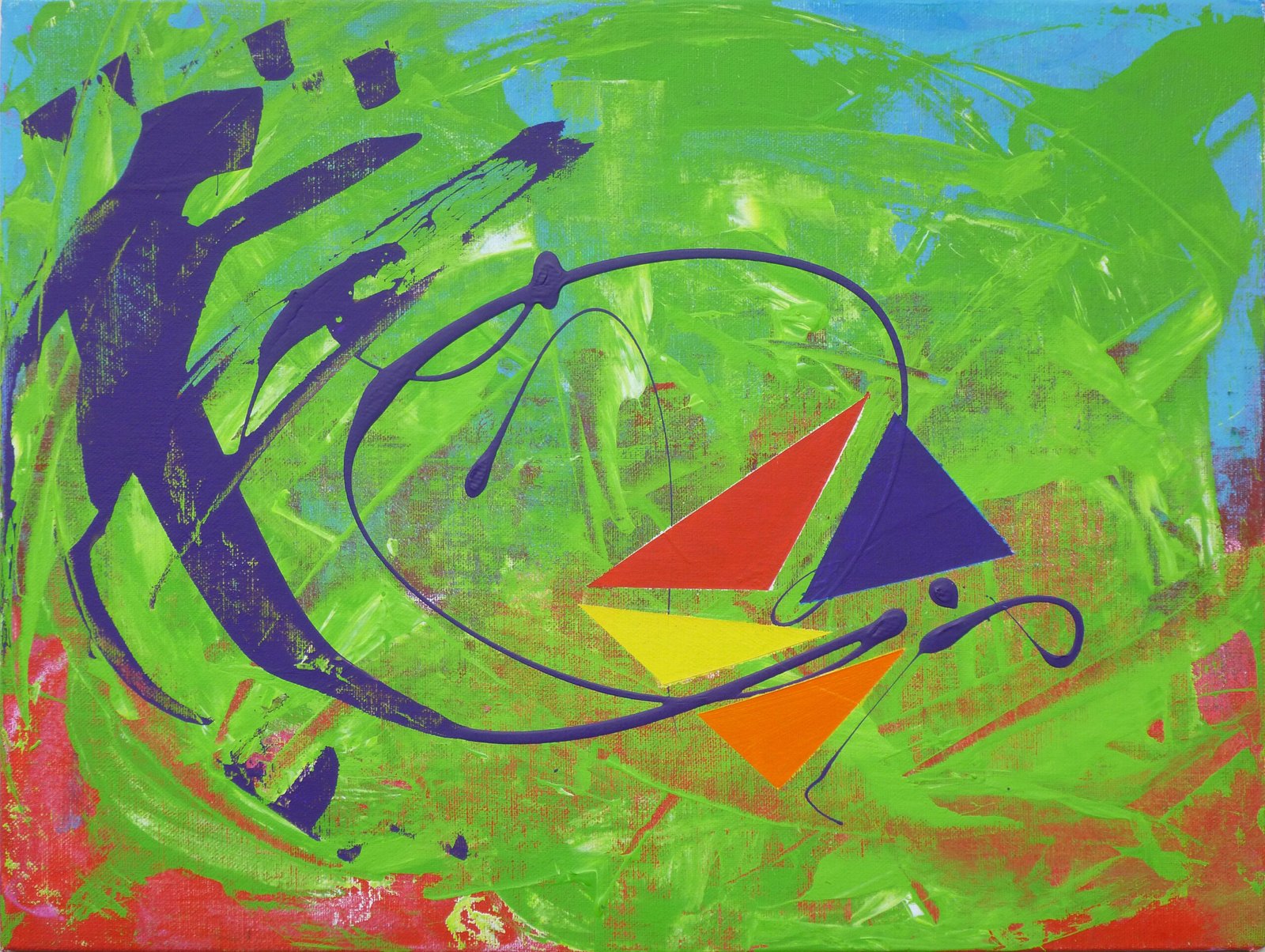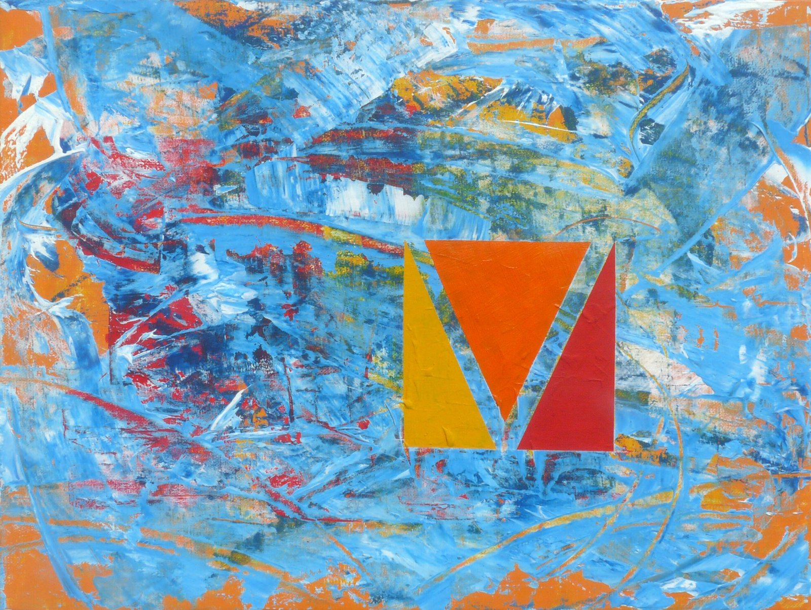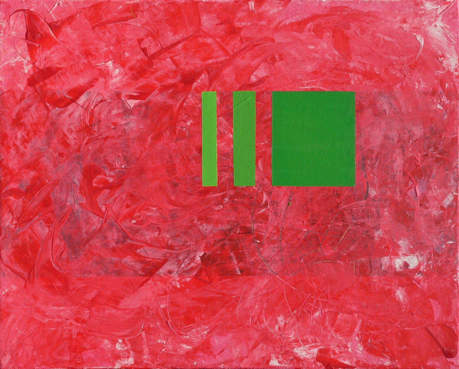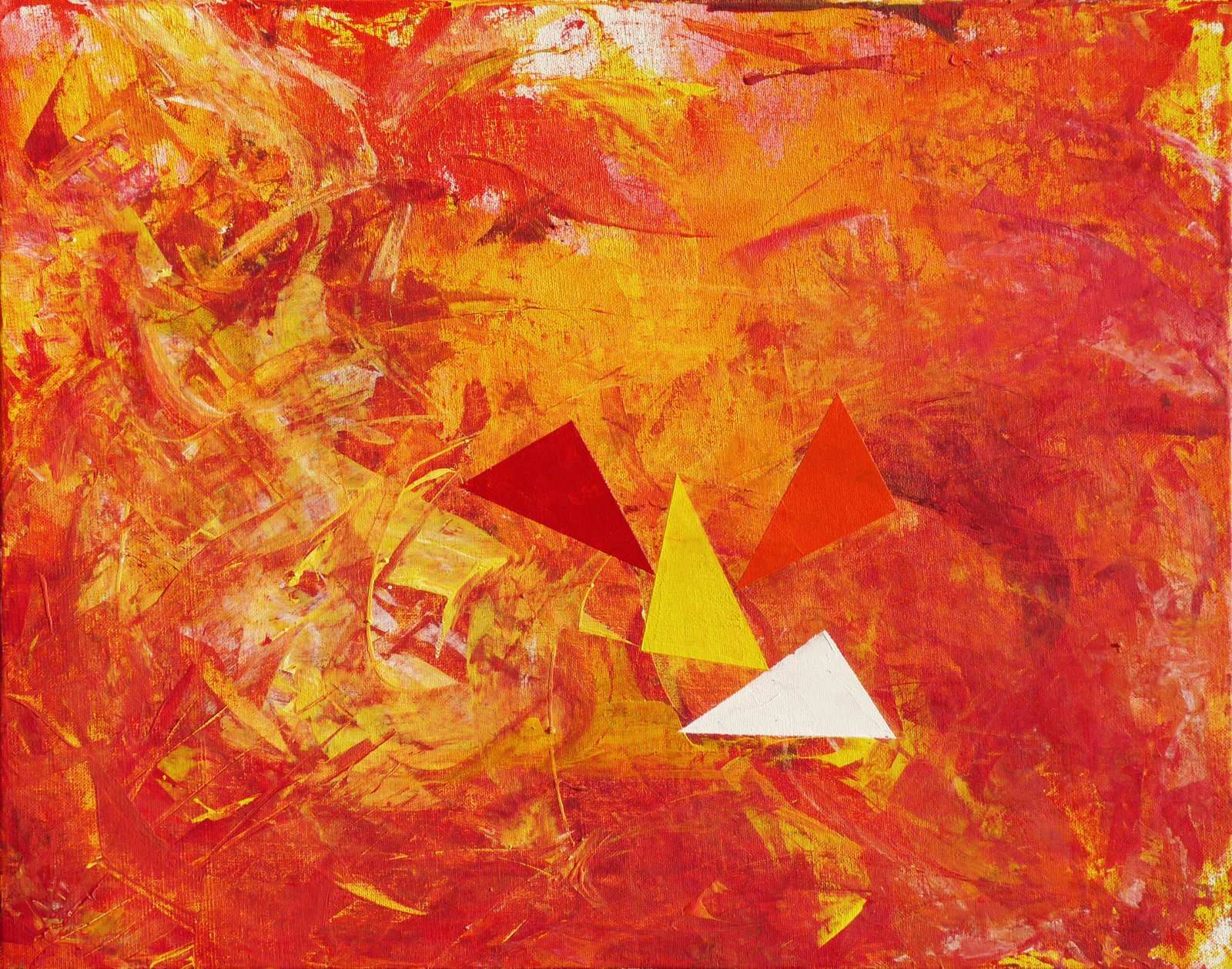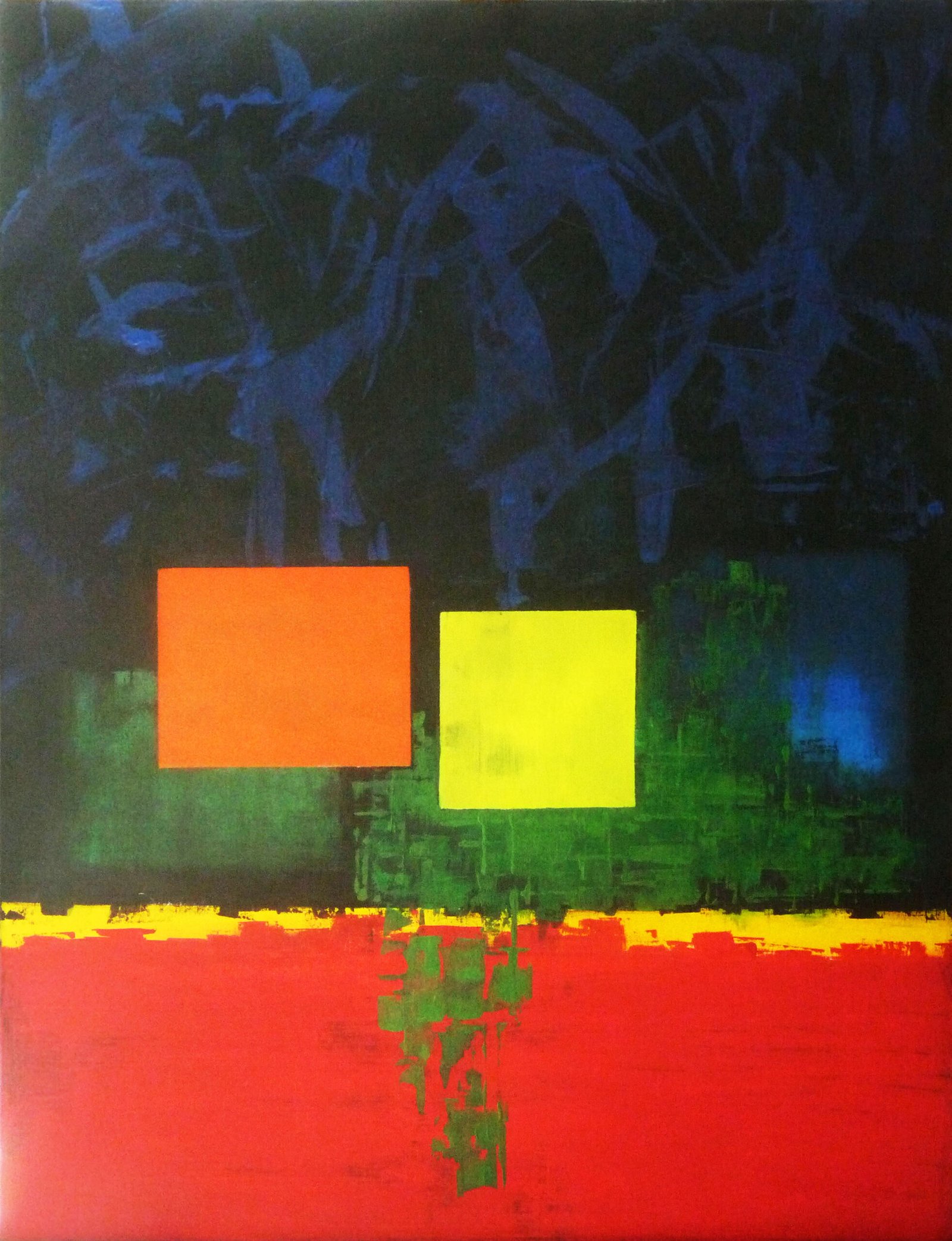 It includes the series “Kaos & Kosmos”, in which I explore events where chaos precedes order, as well as those in which, paradoxically, order generates chaos. This has happened and continues to happen in our reality, provoking revolutions and bloody conflicts that usually bring about paradigm shifts in politics, culture, and religion, which characterize the dynamics of societies. For this, geometric forms, calligraphy, brushstrokes, gestures, layering, scraping and erasing, color, and intention become the language that tells the story.